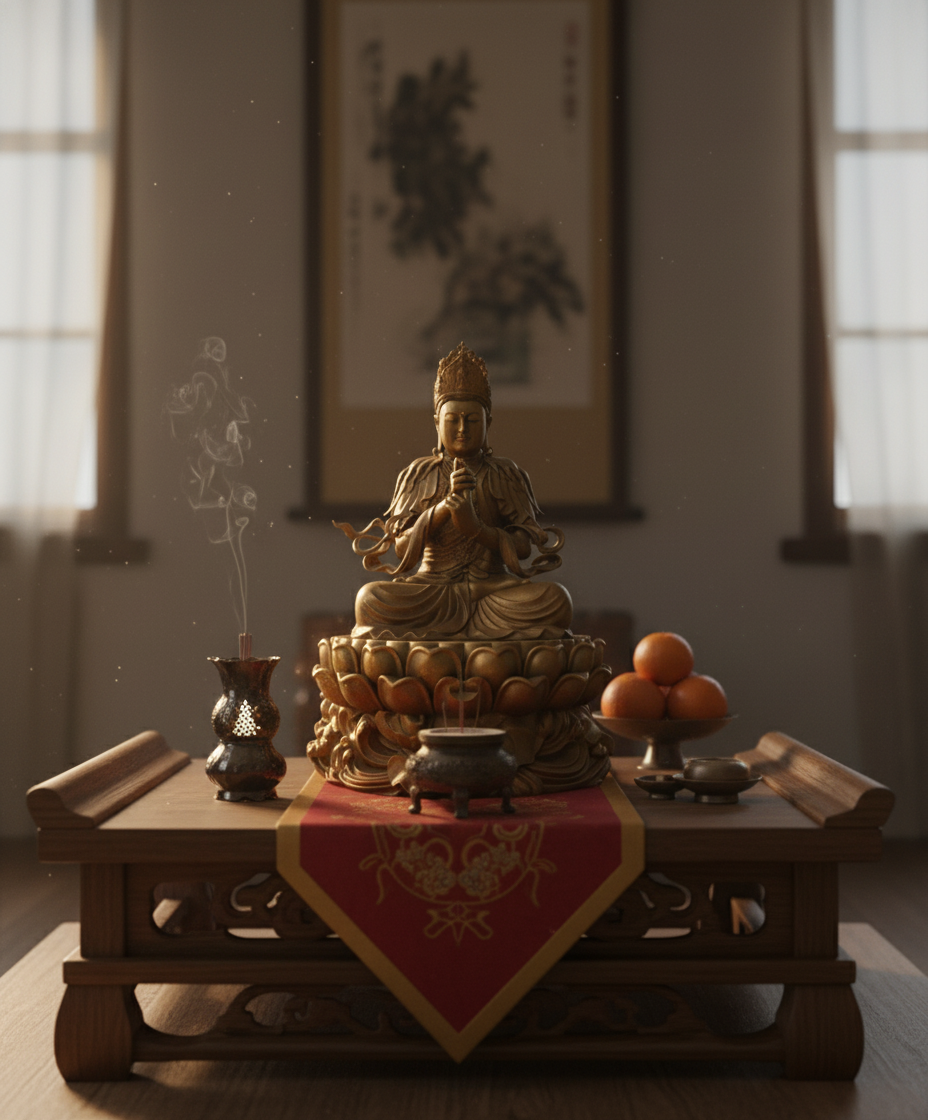 Tại phòng thờ/bàn thờ Phật: Là nơi trang nghiêm nhất. Bàn thờ nên đặt hướng ra cửa chính (hướng Thiện).