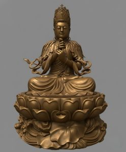 Ấn quyết (Mudra): Tượng thường ở Ấn Thiền Định (cho sự thanh tịnh) hoặc Ấn Vô Úy (ban phước lành, xua tan sợ hãi). Ấn quyết này truyền tải năng lượng bình an.